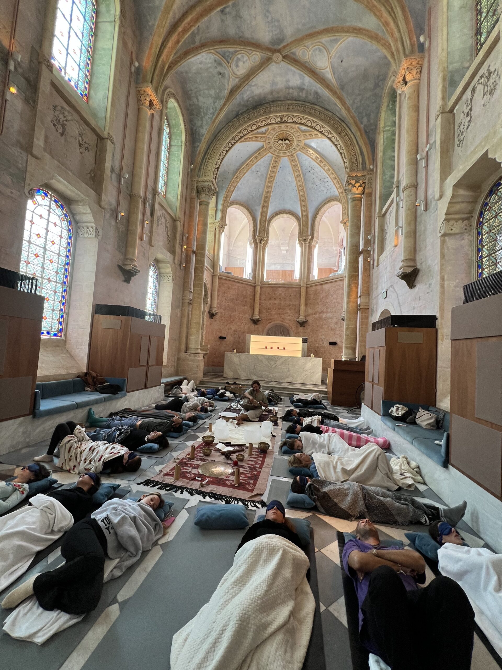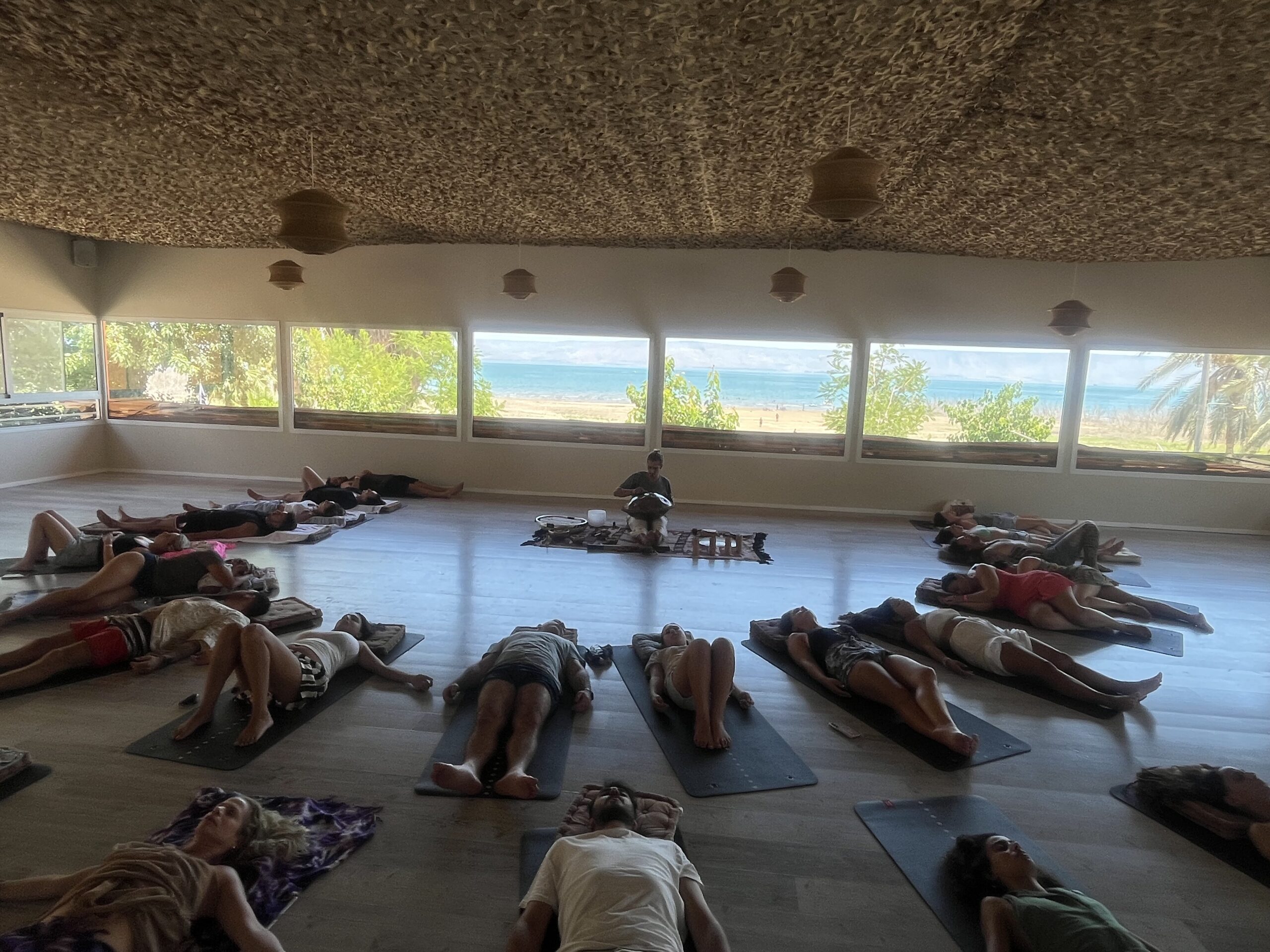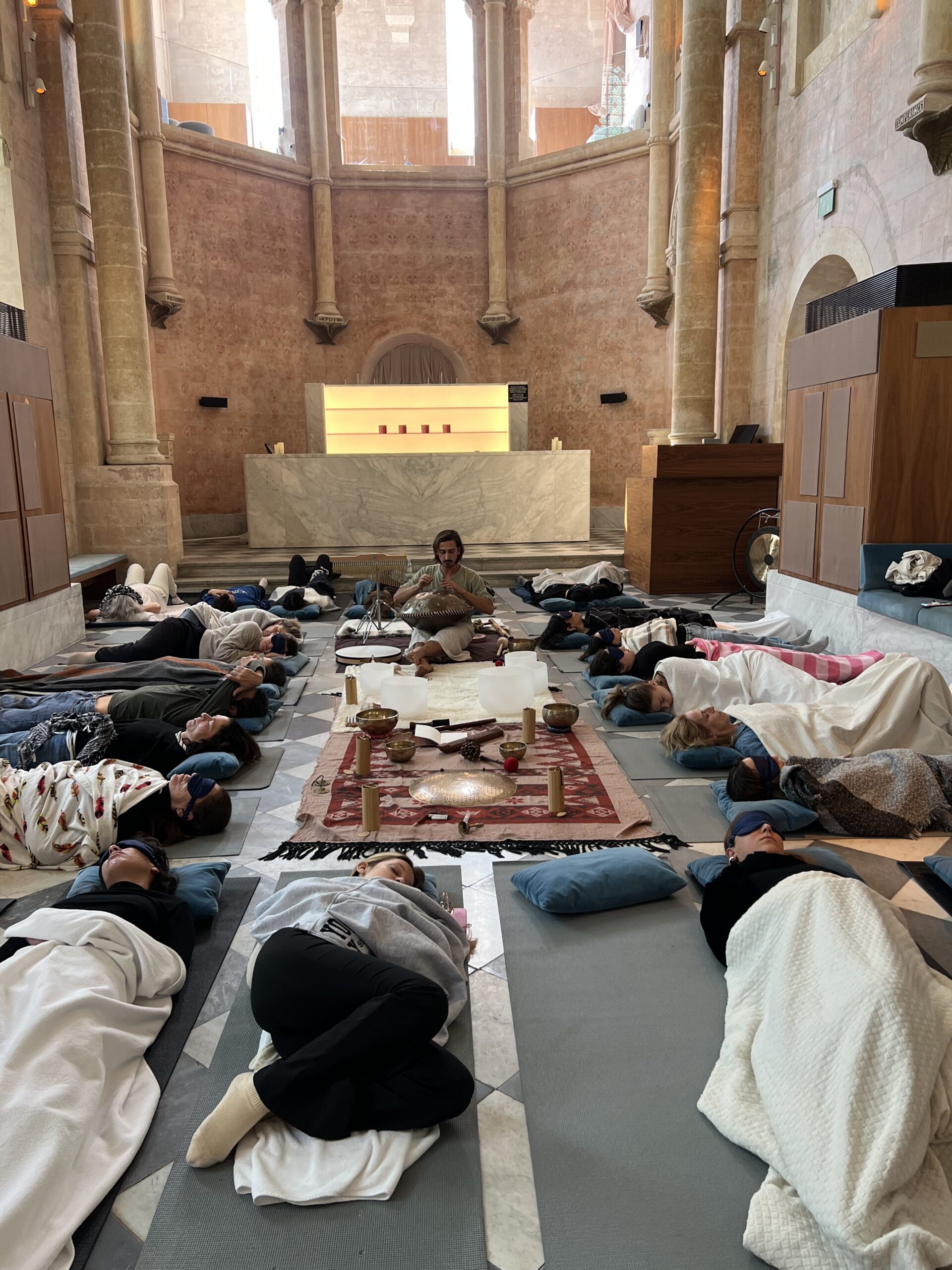 שעה של מסע סאונד הילינג טהור- 15 דק נשימות והרפייה, סריקה והנחייה למסע הצלילים, 45 דק של ניגון מרפא בשכיבה על הגב