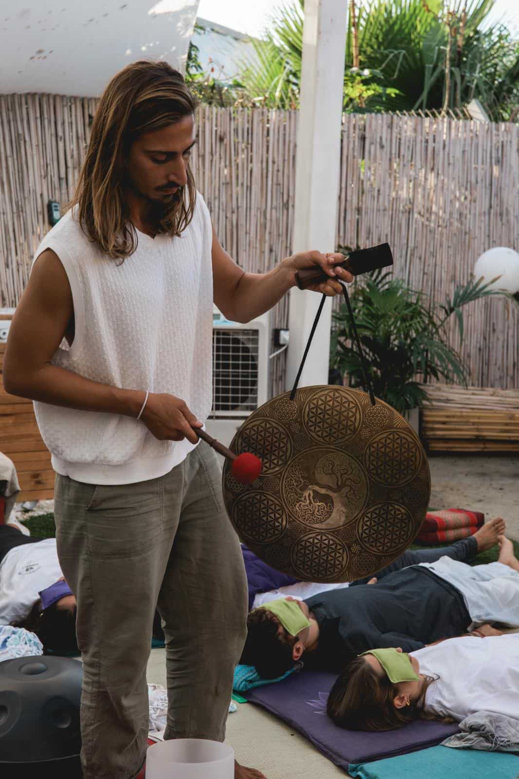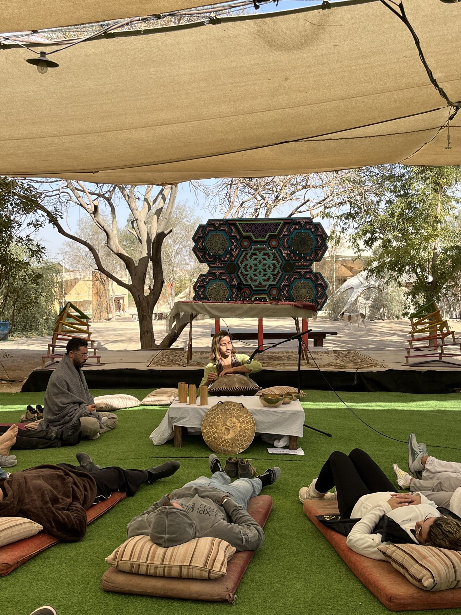 כשהמלחמה התחילה, אחרי תקופה קצרה של מילואים. הייתה לי הזדמנות לנגן וללוות לוחמים ומשפחות בסשנים של צלילים מרפאים. ככל שהסדנאות המשיכו צללתי עמוק להשפעות הרחבות שיש לנגינה על הגוף האנטומי ועל הנפש הבריאה.